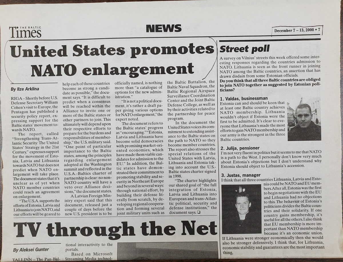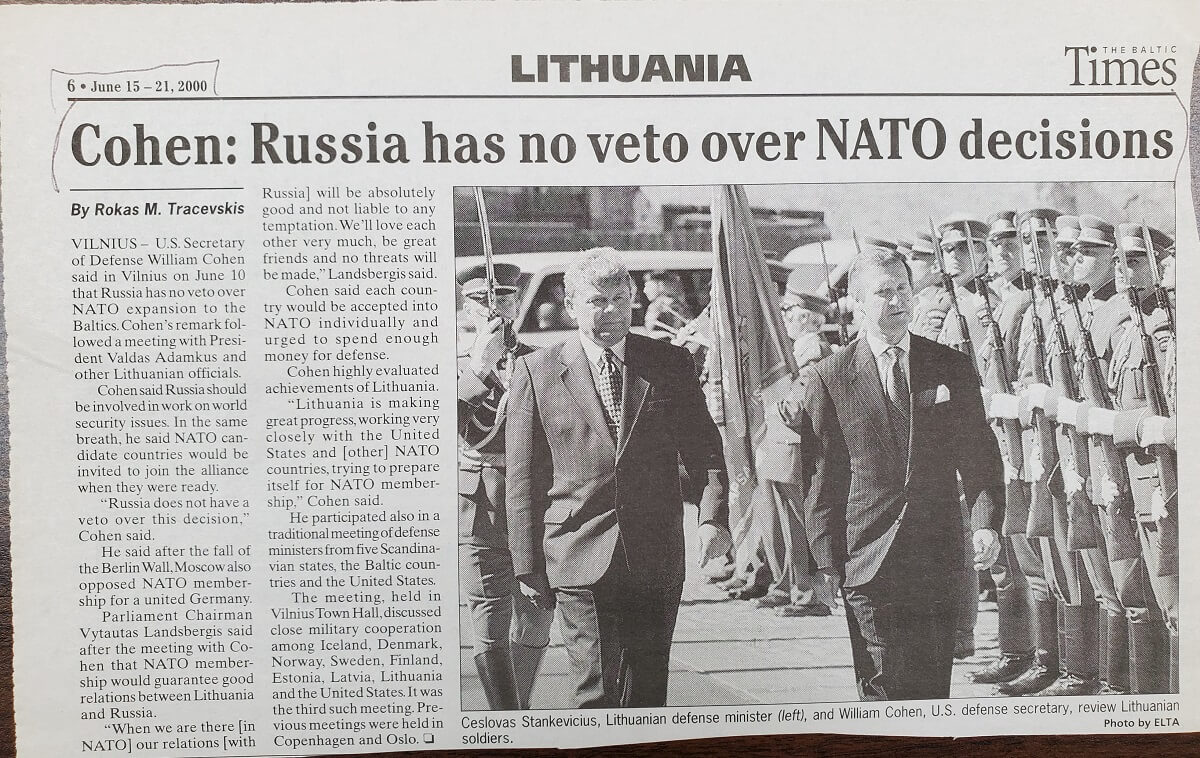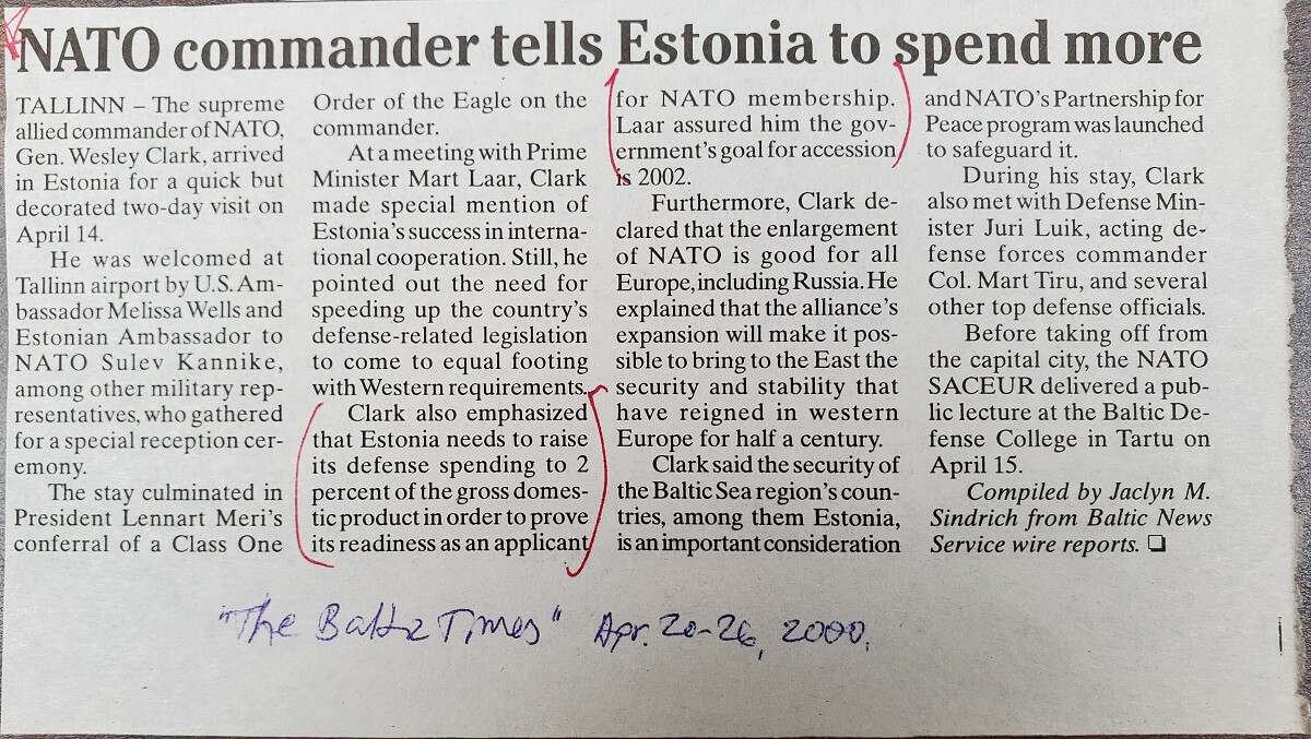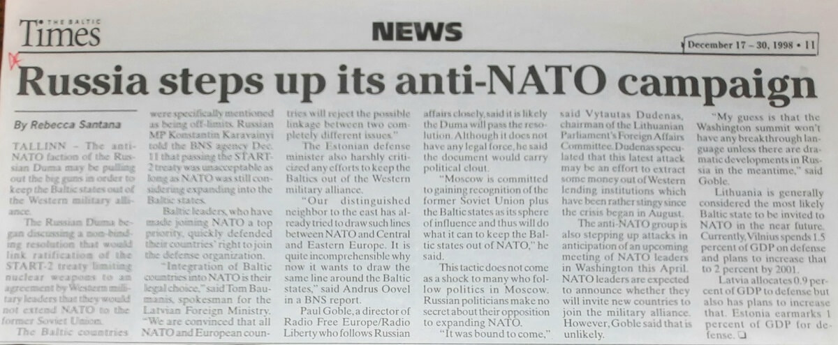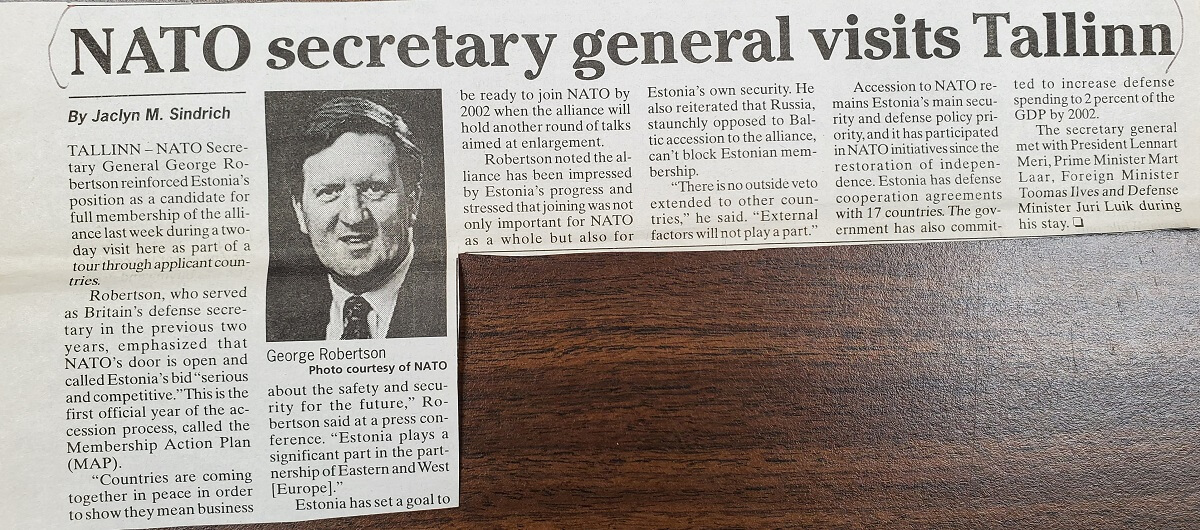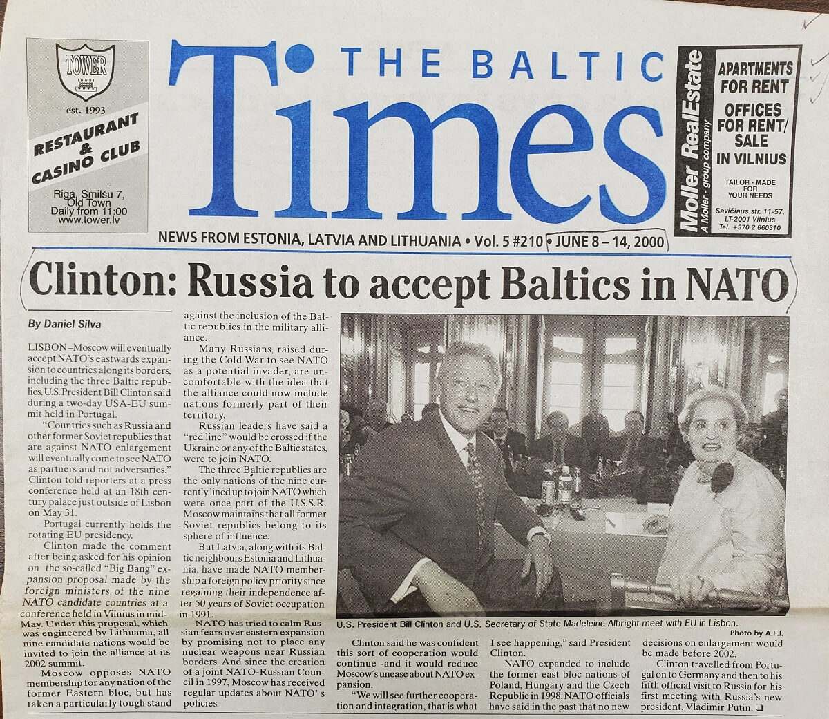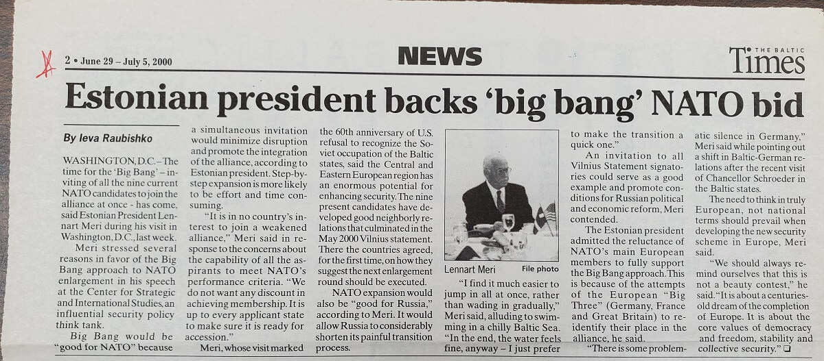Notably in May, During phone call with US Deputy Secretary of State Strobe Talbott, Lennart Meri, President of Estonia, stressed that "…the only way to keep Russian troops from reoccupying his country when Yeltsin gave way to more traditional Russian leader was for Estonia to be in NATO & protected by the American nuclear umbrella."