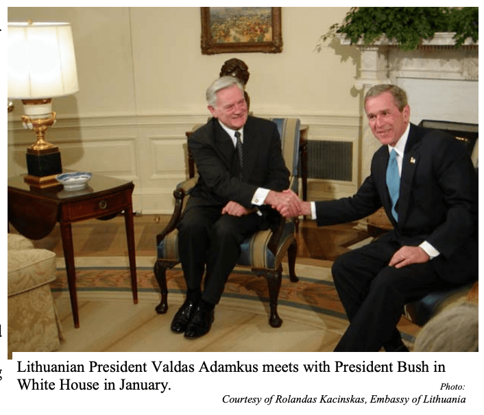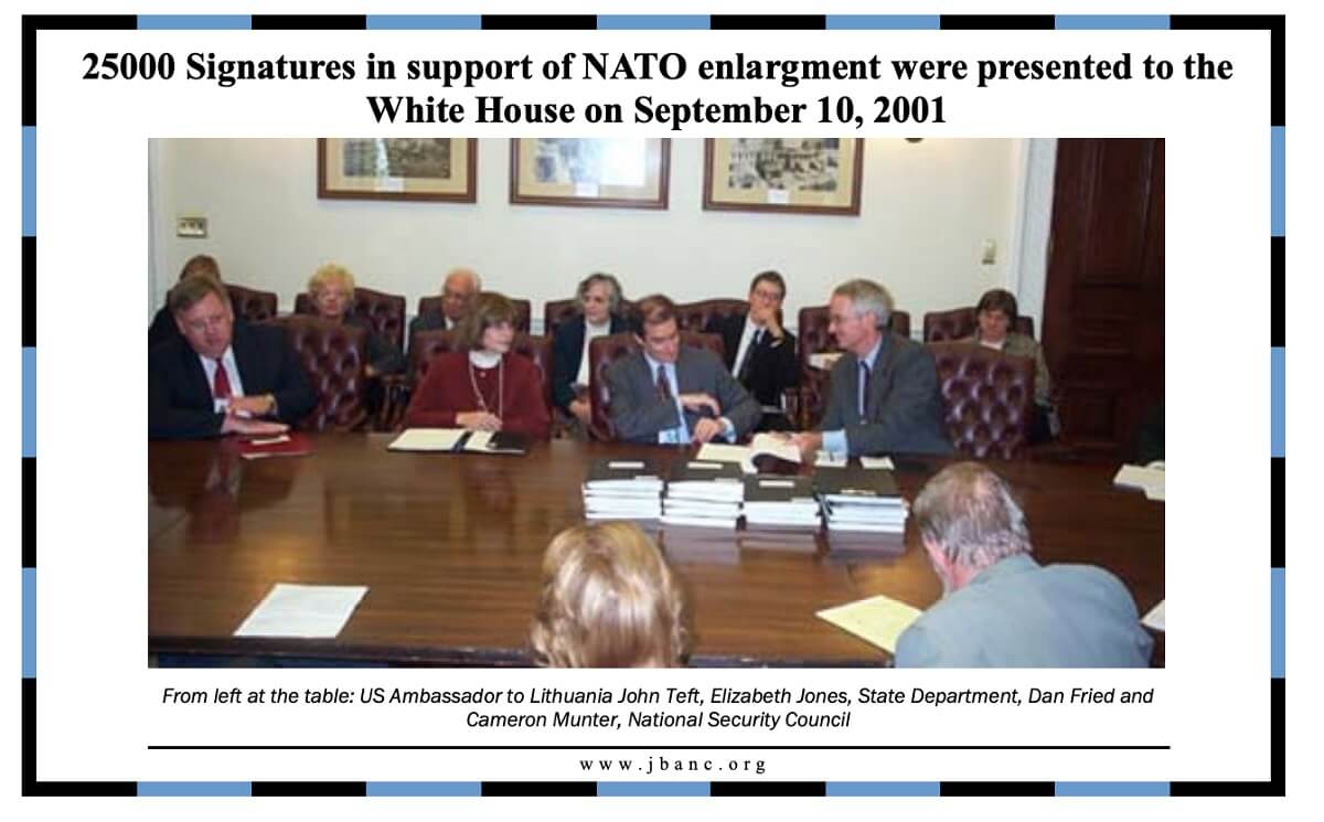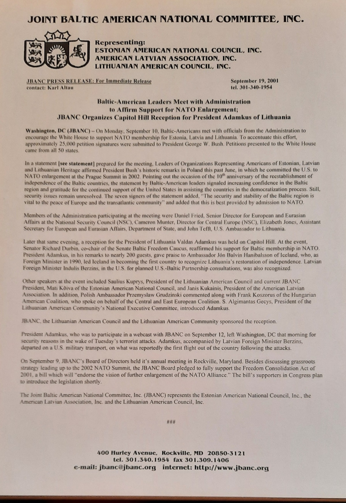 On September 10, during the US-Baltic Partnership Commission meeting in Washington, D.C., 20 Baltic-American leaders presented a petition signed by 25,000 Baltic-Americans from 50 states to White House officials urgin Bush to support NATO membership for the Baltics.