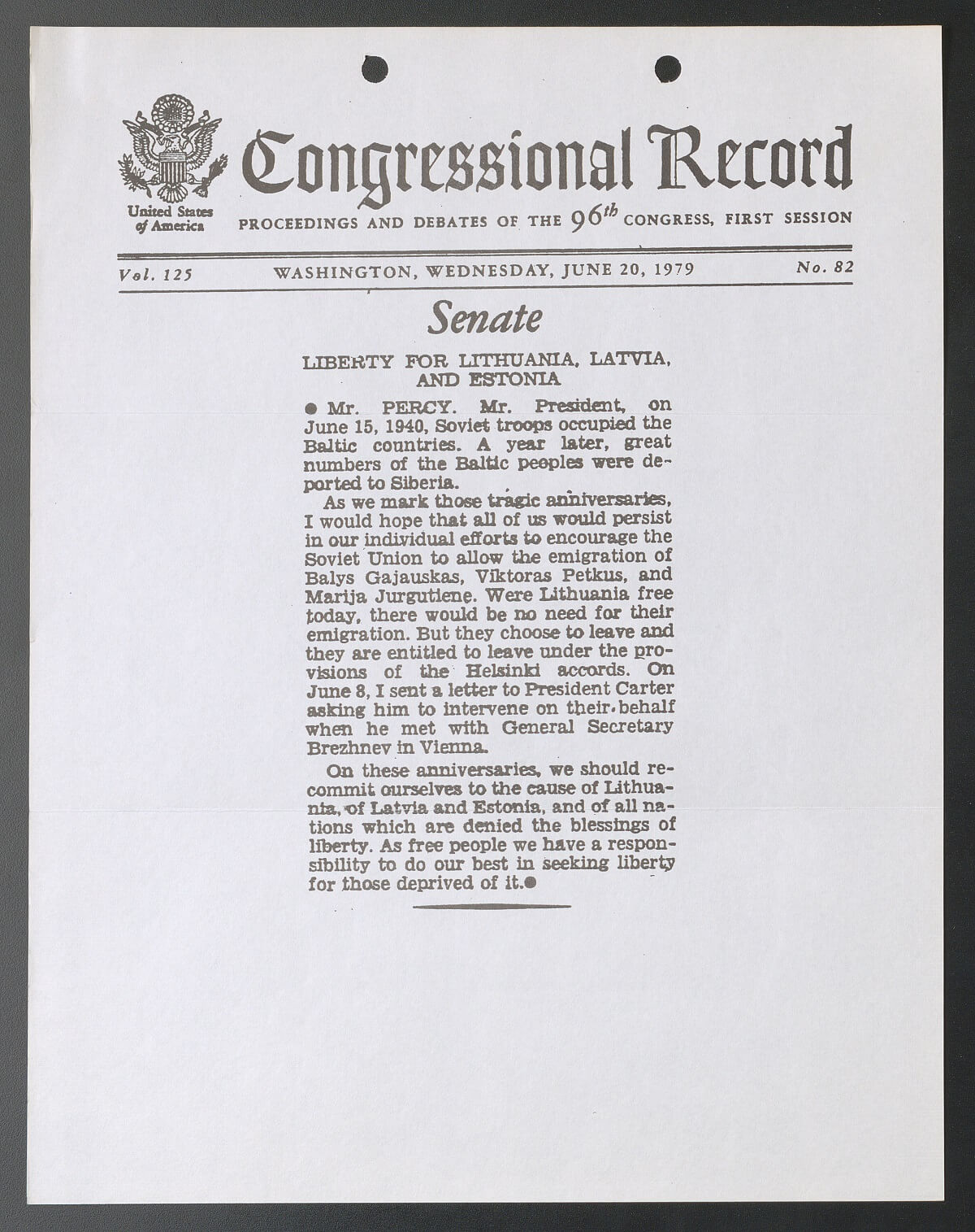 On June 13, Sen. Lugar (R-IN) addressing the CSIS Washington Roundtable on Capitol Hill, stated that "Latvia, Lithuania, and Estonia are among the great success stories of Europe's post-communist transition. Their illegal annexation by the Soviet Union sixty years ago should not determine Western policy today." (65)