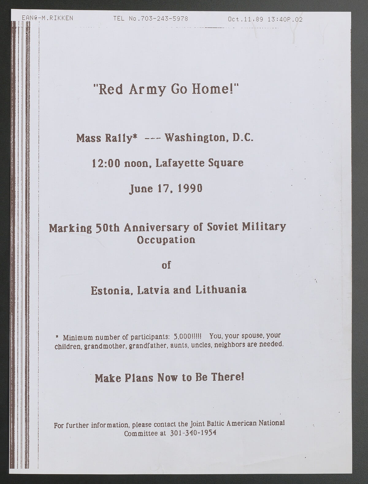 Since the 1950s, the Baltic-American community played a very active role in the efforts to raise awareness about the Baltic issue in the United States, and worked with the U.S. officials to gather support for the independence of Estonia, Latvia and Lithuania.