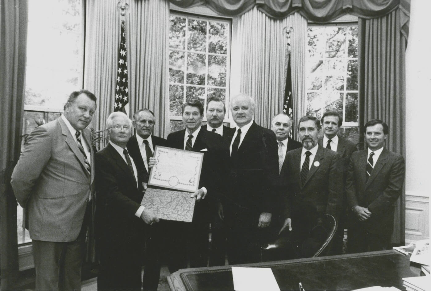 On June 12, 1986 at the White House with President Ronald Reagan accepting the JBANC Baltic Freedom Award during a Signing Ceremony for Baltic Freedom Day in the Oval Office.
